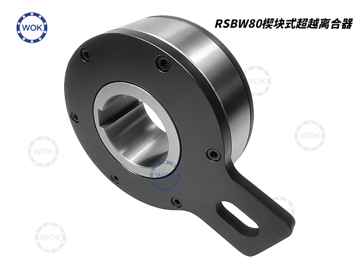 RSBW80逆止器产品结构图RSBW80逆止器产品型号规格尺寸技术参数表 1. 型号 RSBW为 FDC楔块式单向离合器。内含轴承支撑,使用平面(滑动)轴承支撑并定位,适用于低运转速度。 2. 主要应用于防止逆转,此型号特点为最小的空间内提供较大扭力,此型设计可适用于严苛环境需求,例如高度潮湿环境,或有水溅洒之区域。 3. 扭力臂之槽沟用螺丝固定于机壁,以提供力量防止逆转,螺丝与扭力臂沟槽之